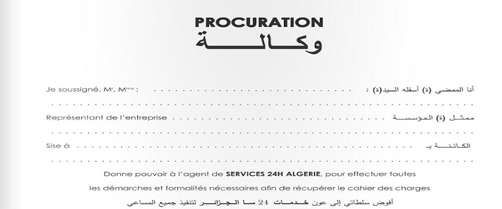 l'agent de SERVICES 24H ALGERIE, pour effectuer toutes les démarches et formalités nécessaires pour déposer la soumission. |