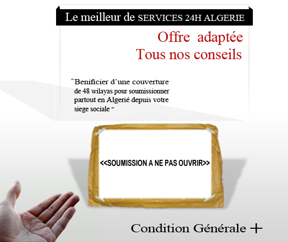 - La demande d’un dépôt de soumission, de préférence, 03 Jours avant la date limite du dépôt des offres. Dans le cas contraire, SERVICES24HALGERIE décline toute responsabilité.